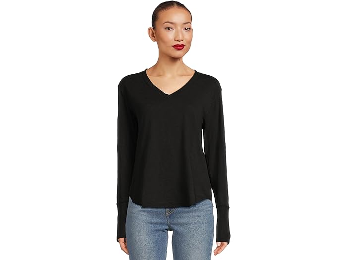 Long Sleeve Waffle Mix V-Neck Top